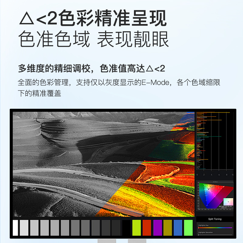 支持色域限缩显示以及 M-BOOK 模式与灰度显示模式