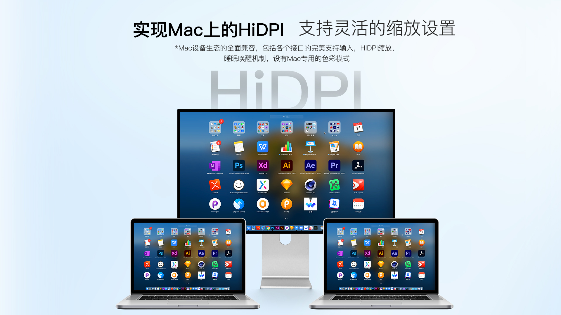支持兼容 Mac 设备雷雳 5 与 HDMI2.1 接口无压缩 DSC 输入