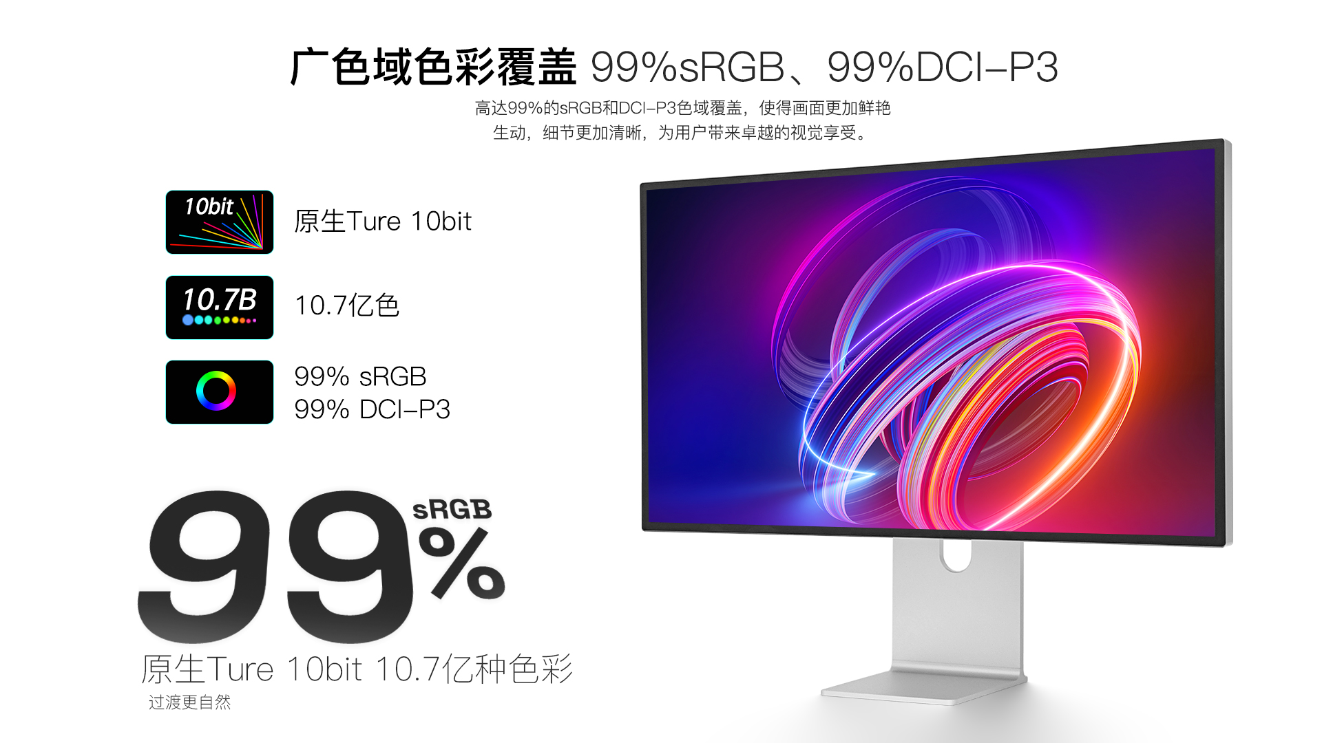 - 显示色域范围 99% sRGB 99%DCI-P3