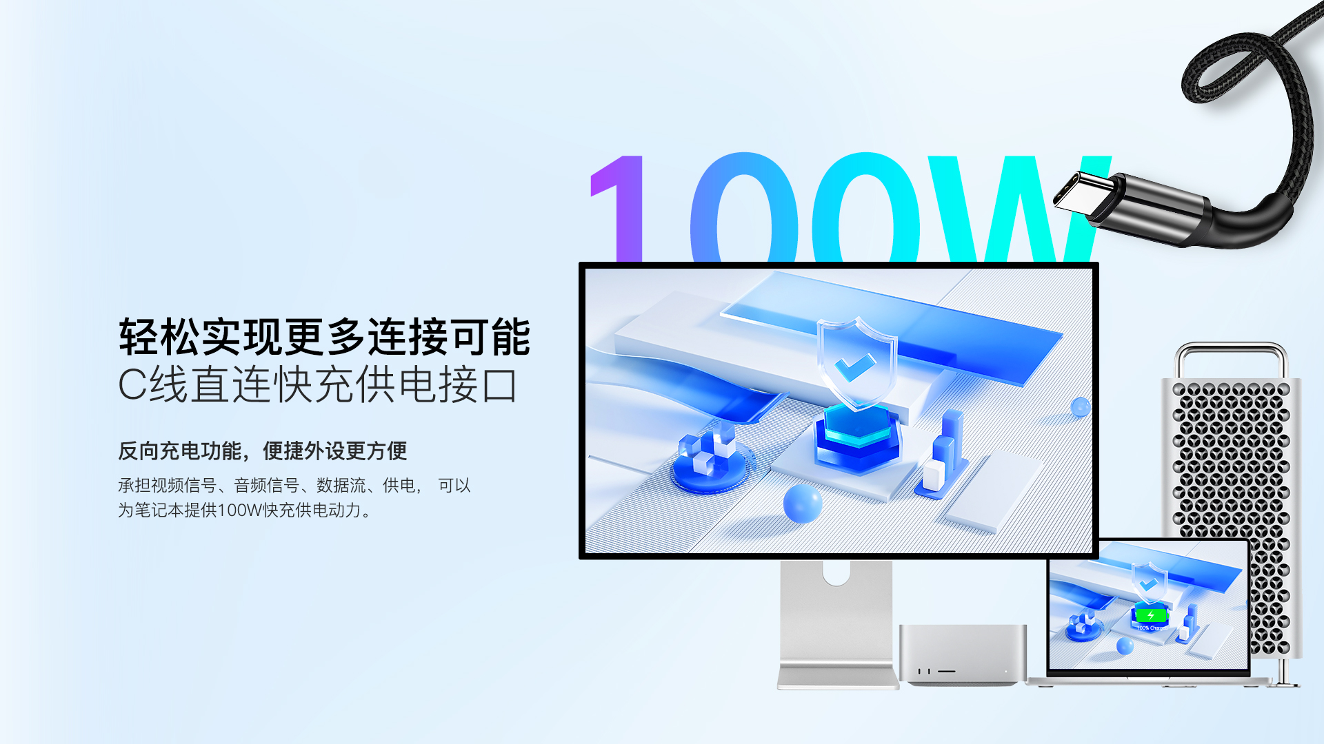 (最大 100W)同时接收视频和数据信号,并兼容 Thunderbolt 雷电 4/5/USB4