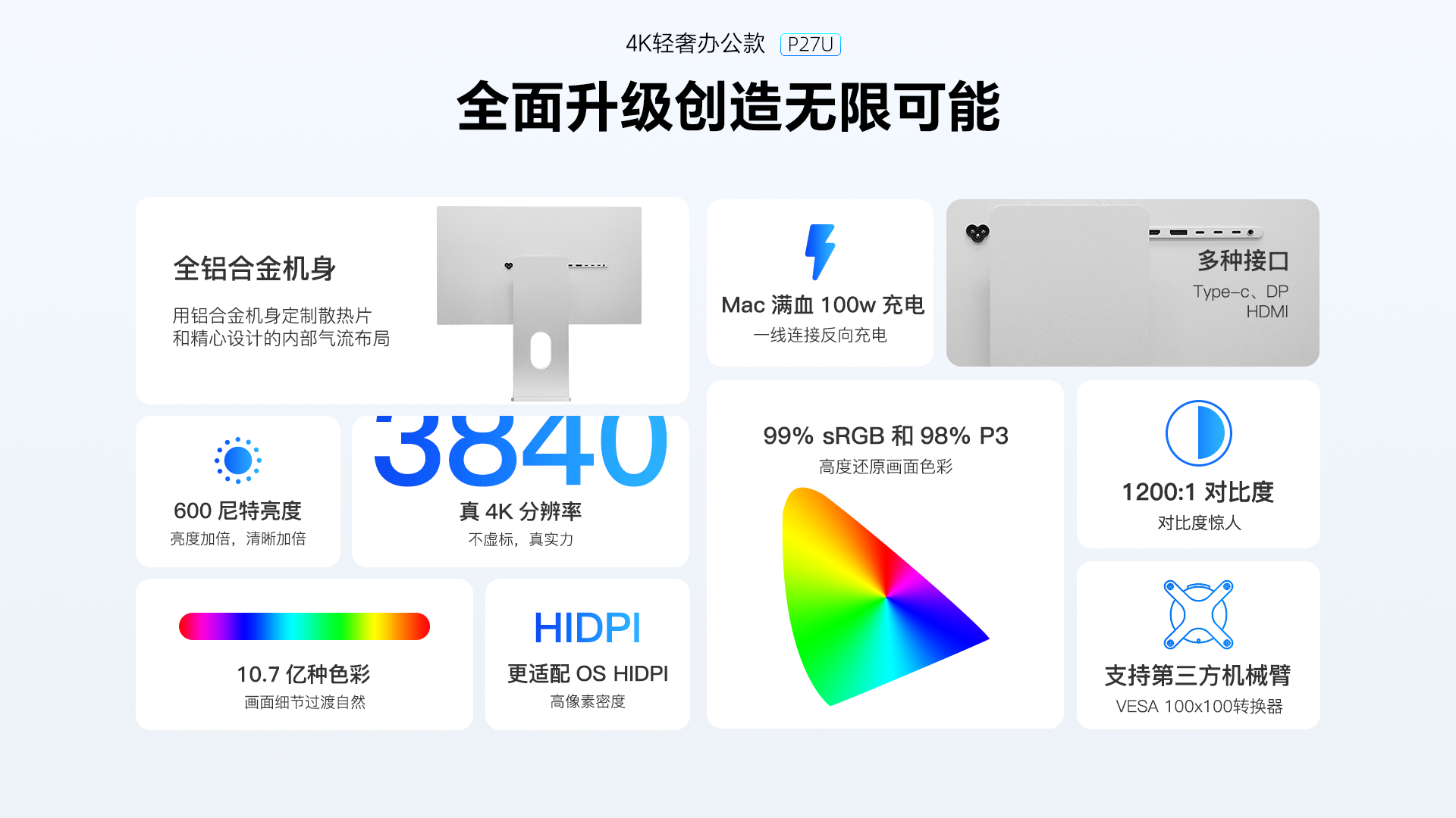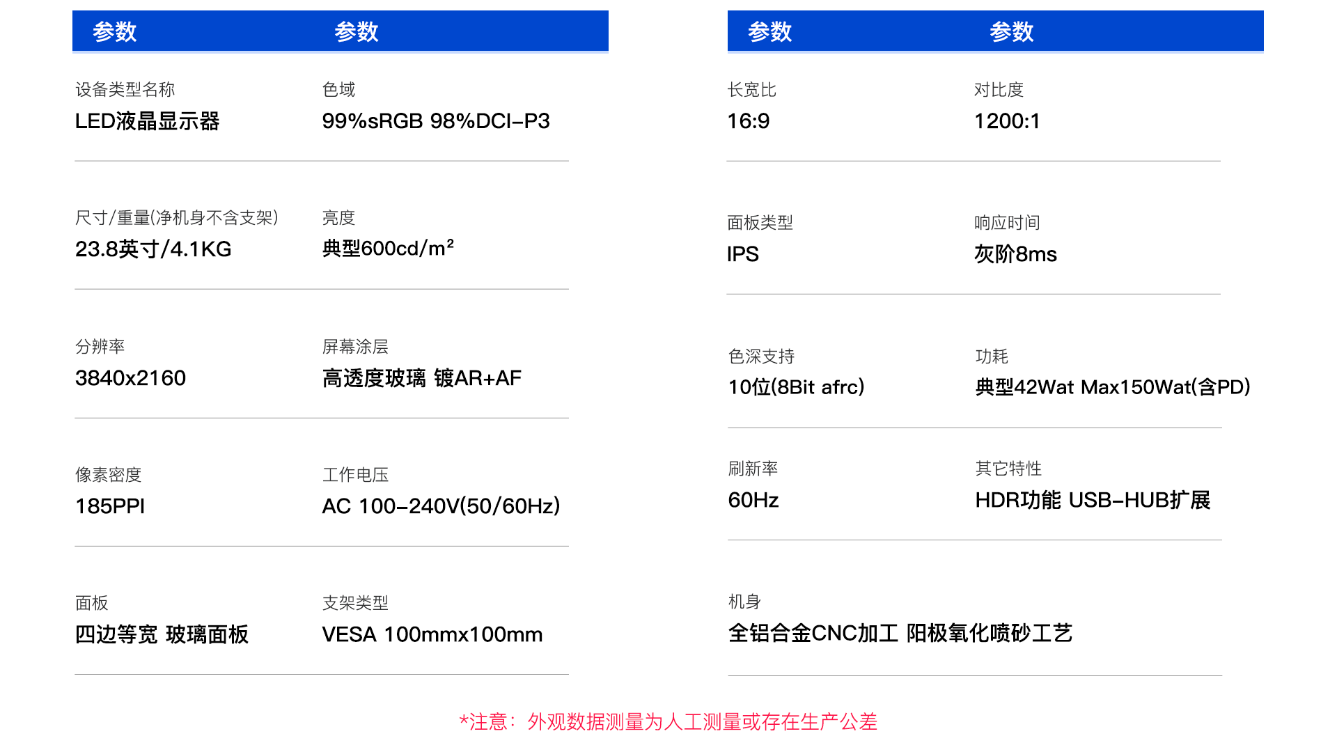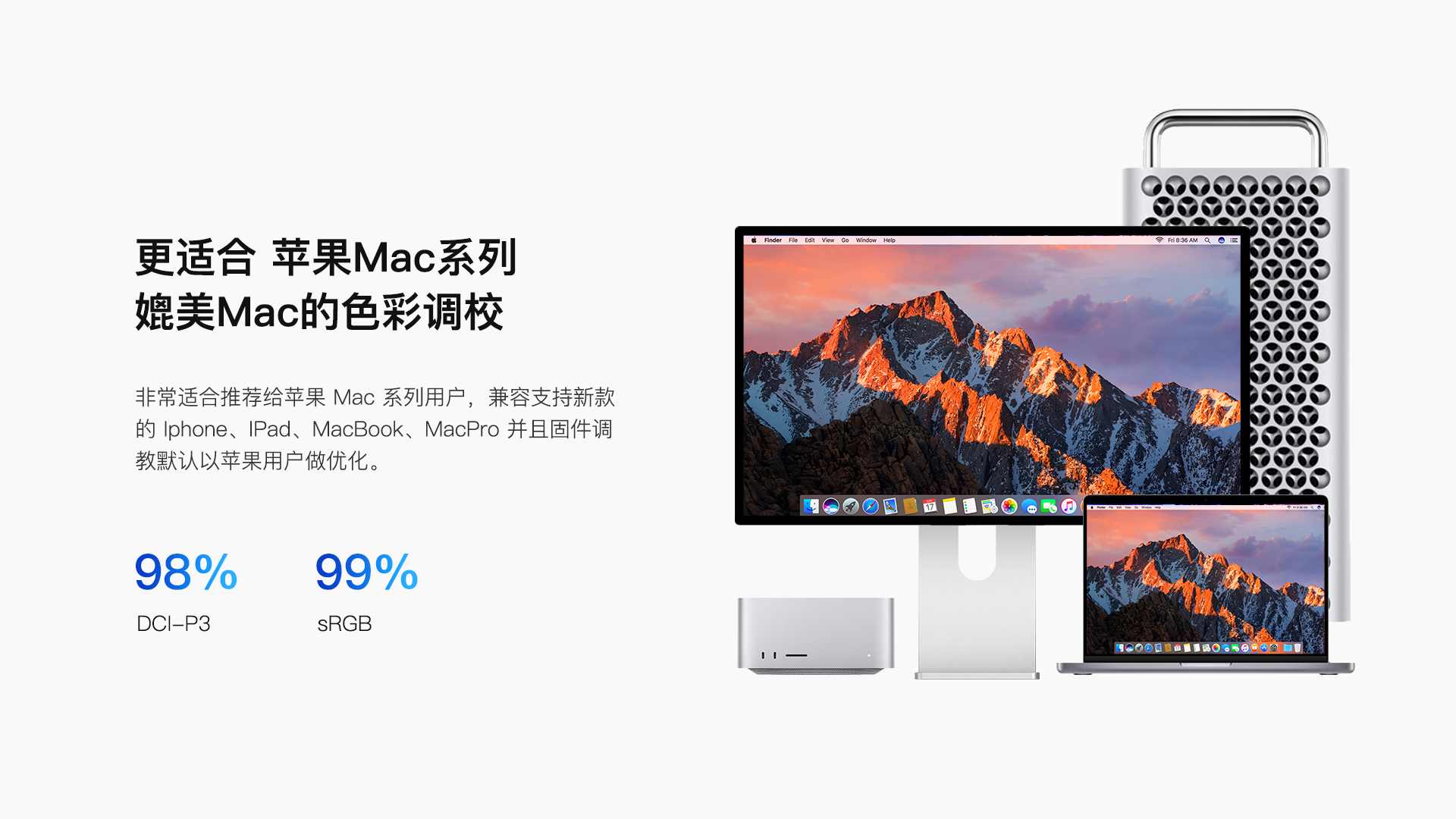 - 显示色域范围 99% sRGB 99%DCI-P3