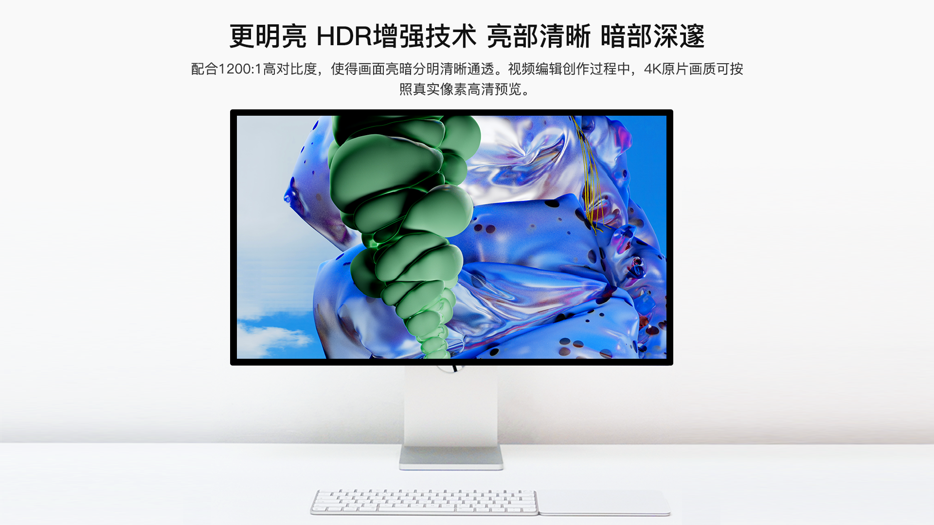 6144 x 3456 (16:9) 分辨率,高达 2100 万像素,223PPI 原生 10 位色深