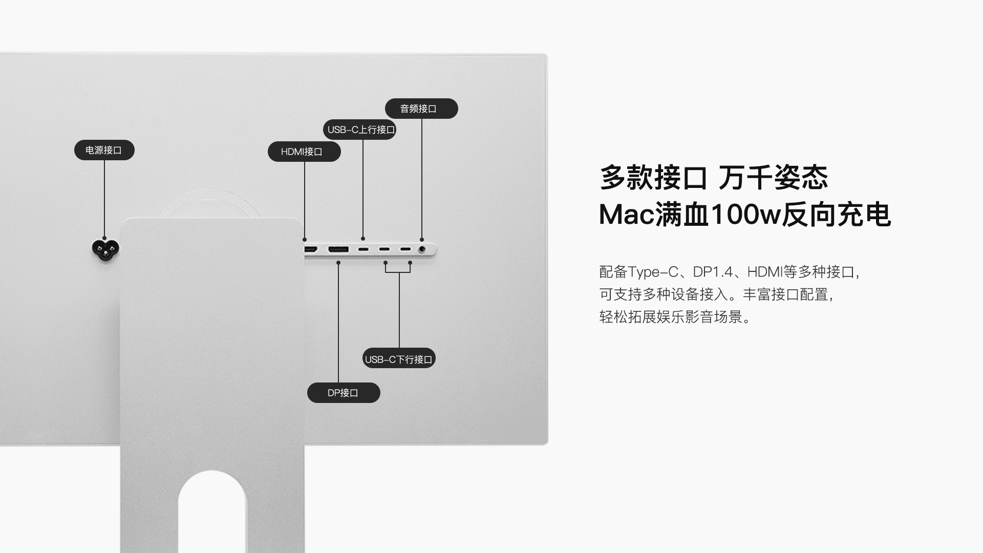 支持兼容 Mac 设备雷雳 5 与 HDMI2.1 接口无压缩 DSC 输入