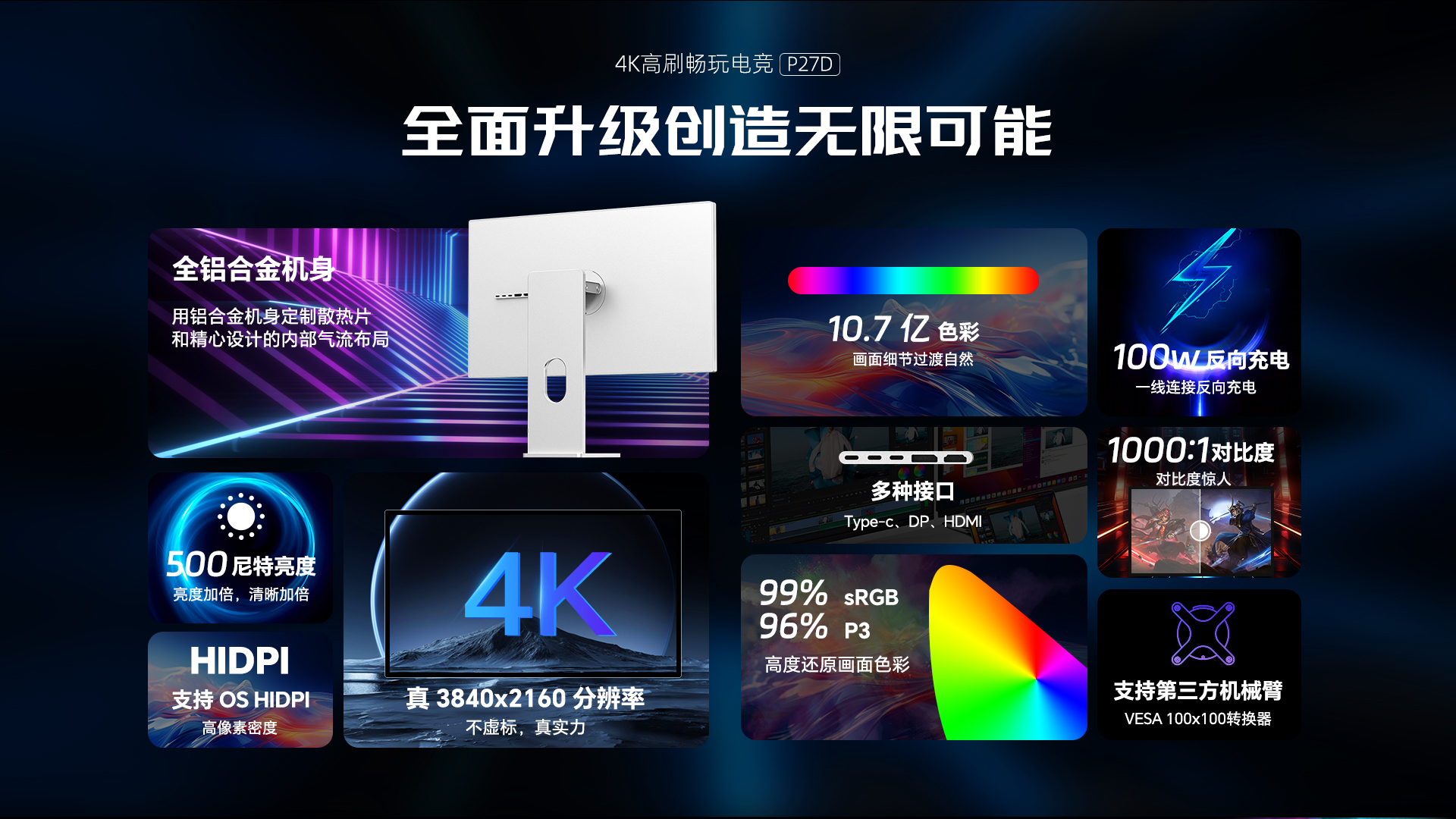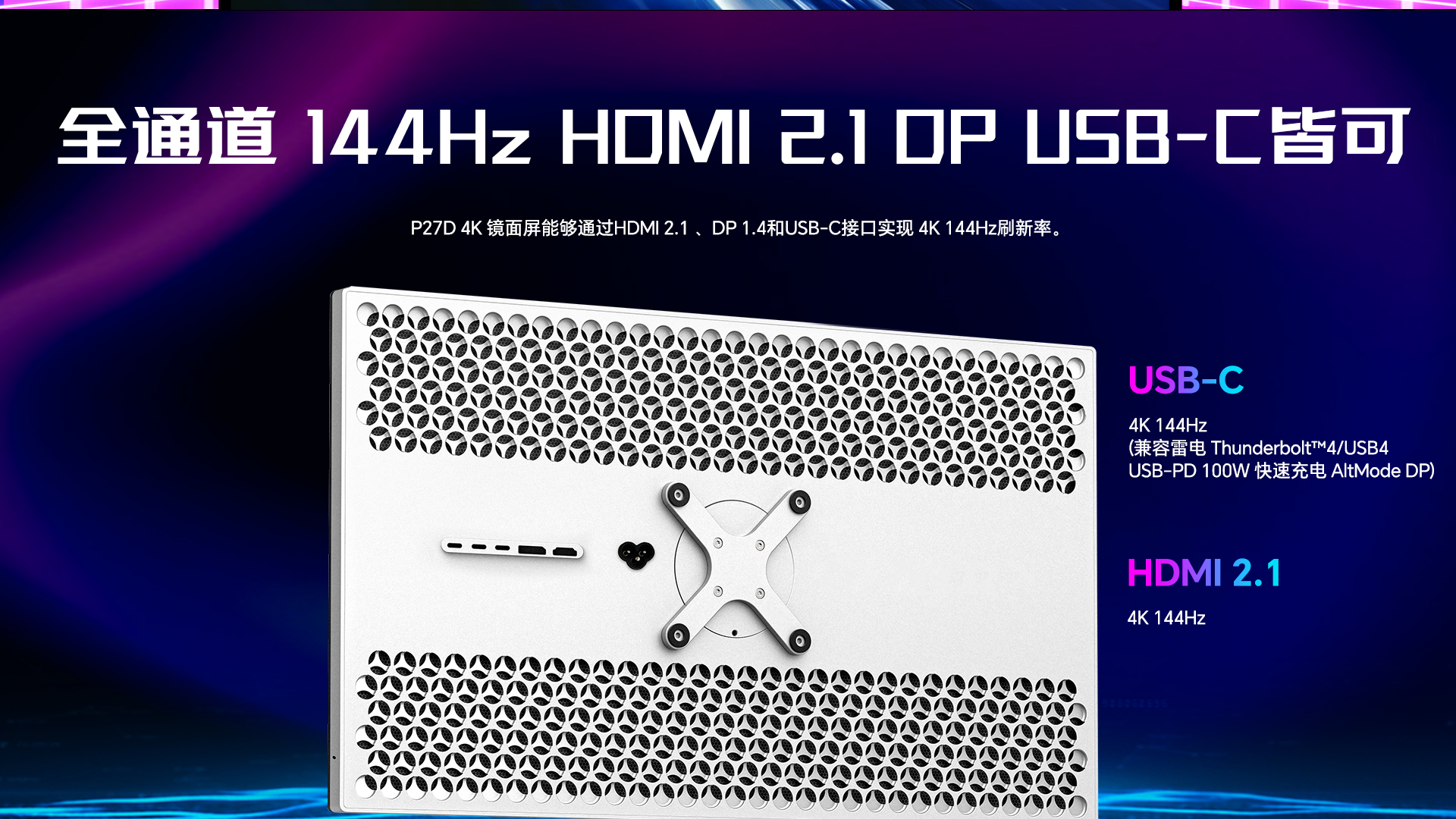 - USB Type-C 80Gbps 和 HDMI2.1 48Gbps 和 DisplayPort2.1 80Gbps 的数字连接。