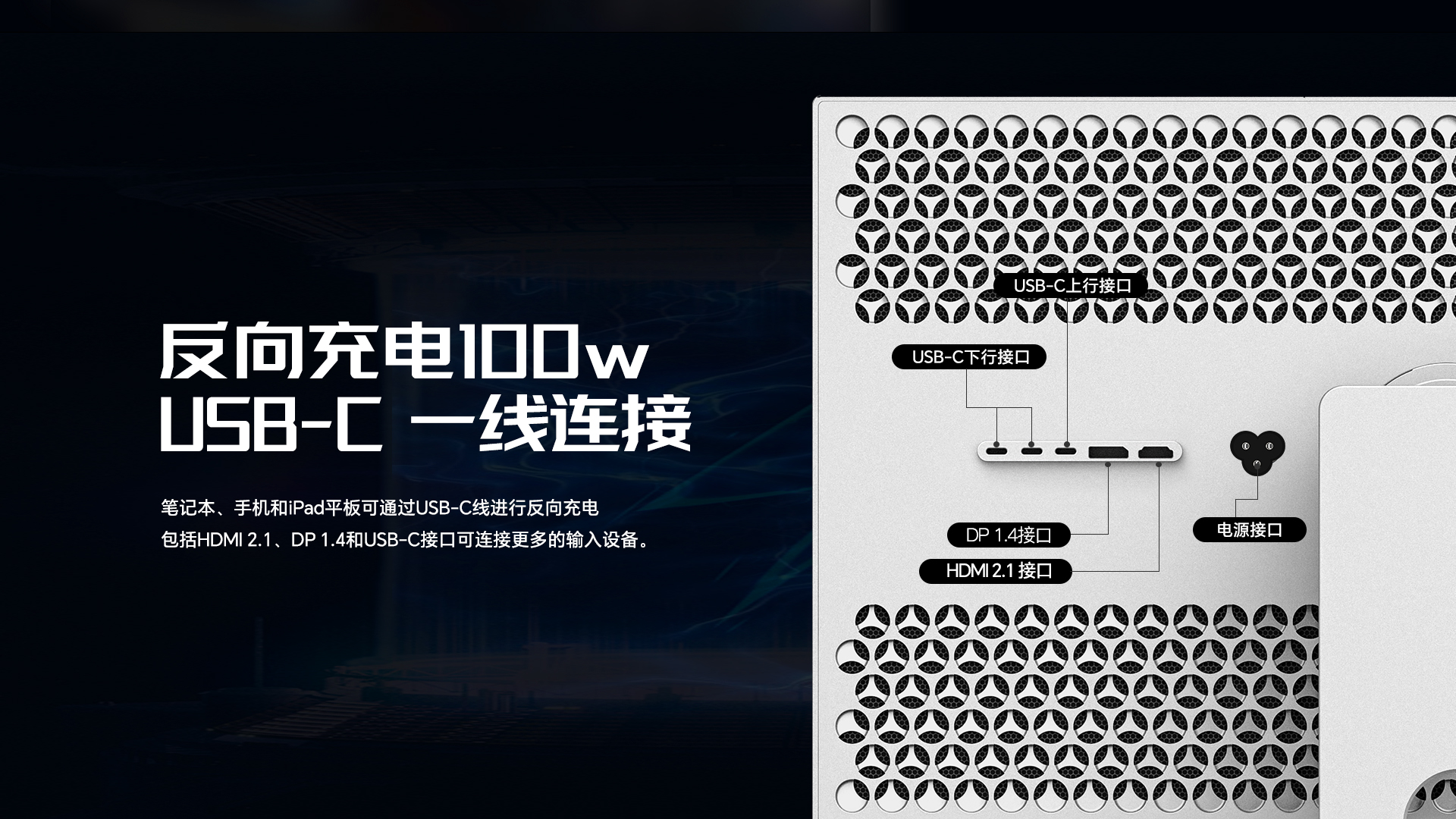 (最大 100W)同时接收视频和数据信号,并兼容 Thunderbolt 雷电 4/5/USB4