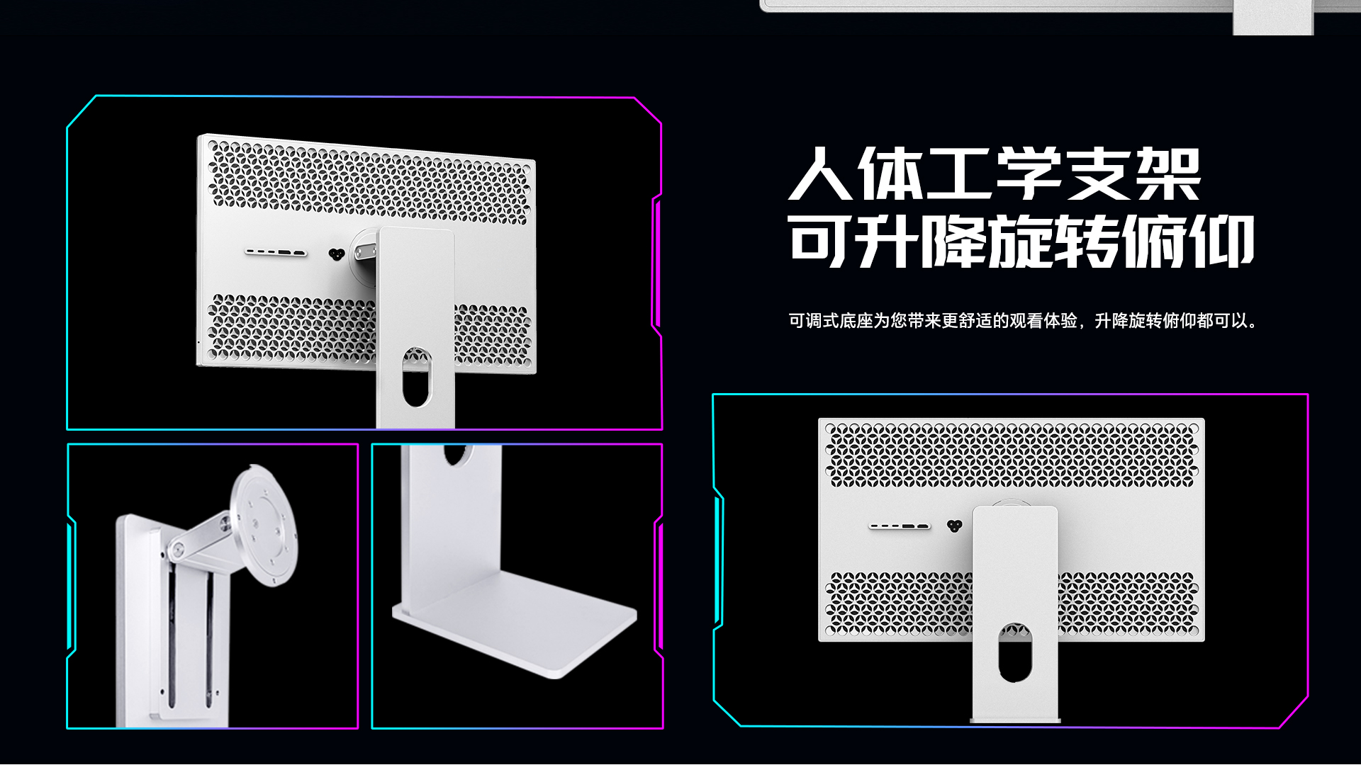 - 配备 ATW 光学补偿技术以及全贴合 AR 防眩光涂层技术