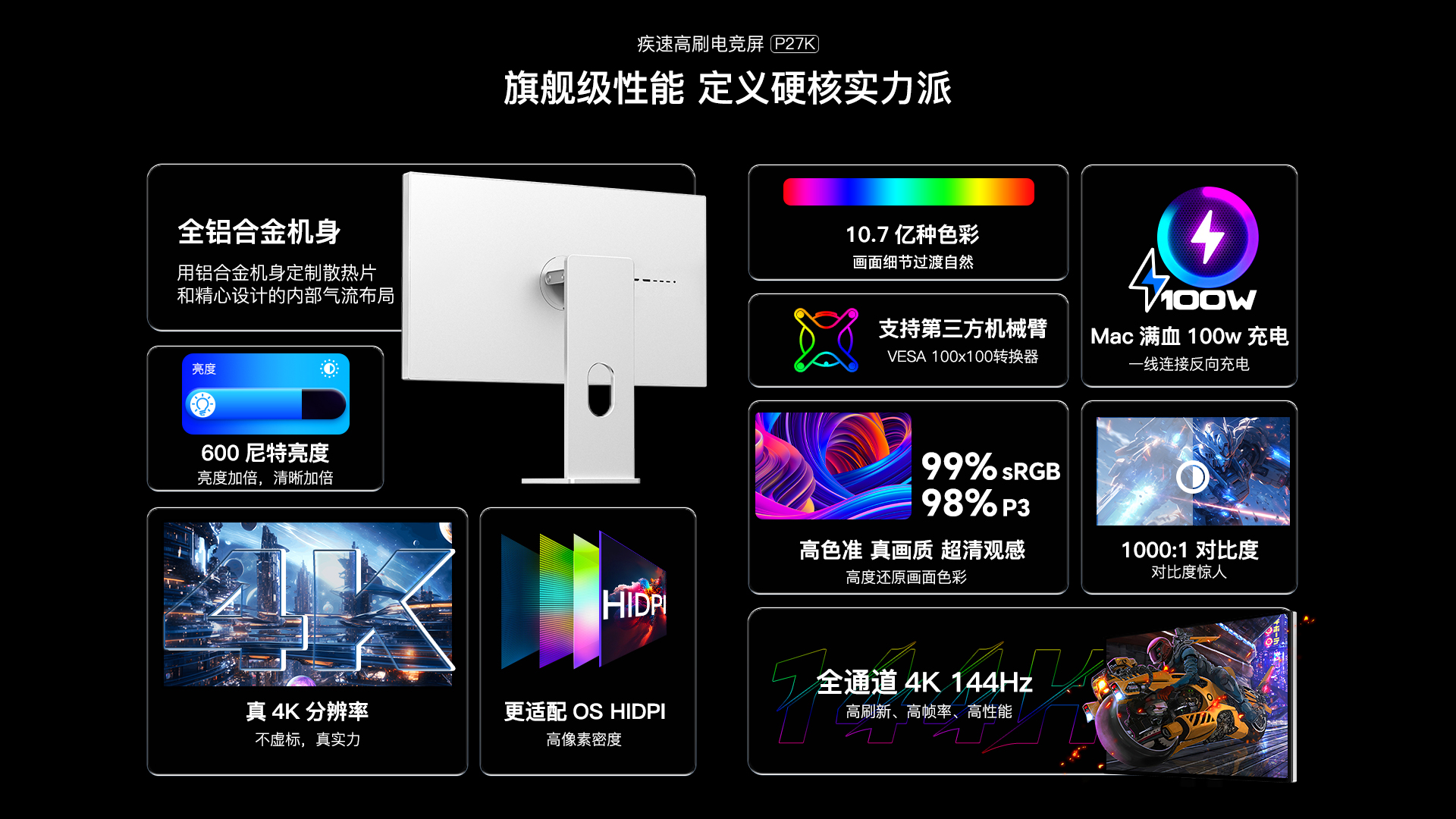 支持兼容 Mac 设备雷雳 5 与 HDMI2.1 接口无压缩 DSC 输入
