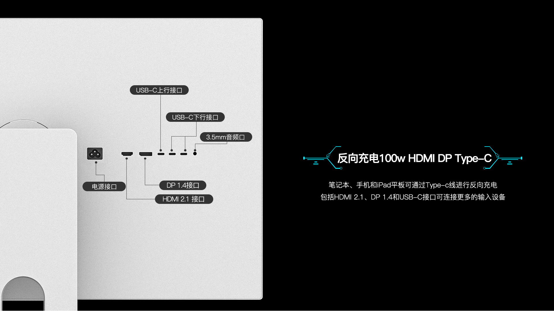 - USB Type-C 80Gbps 和 HDMI2.1 48Gbps 和 DisplayPort2.1 80Gbps 的数字连接。