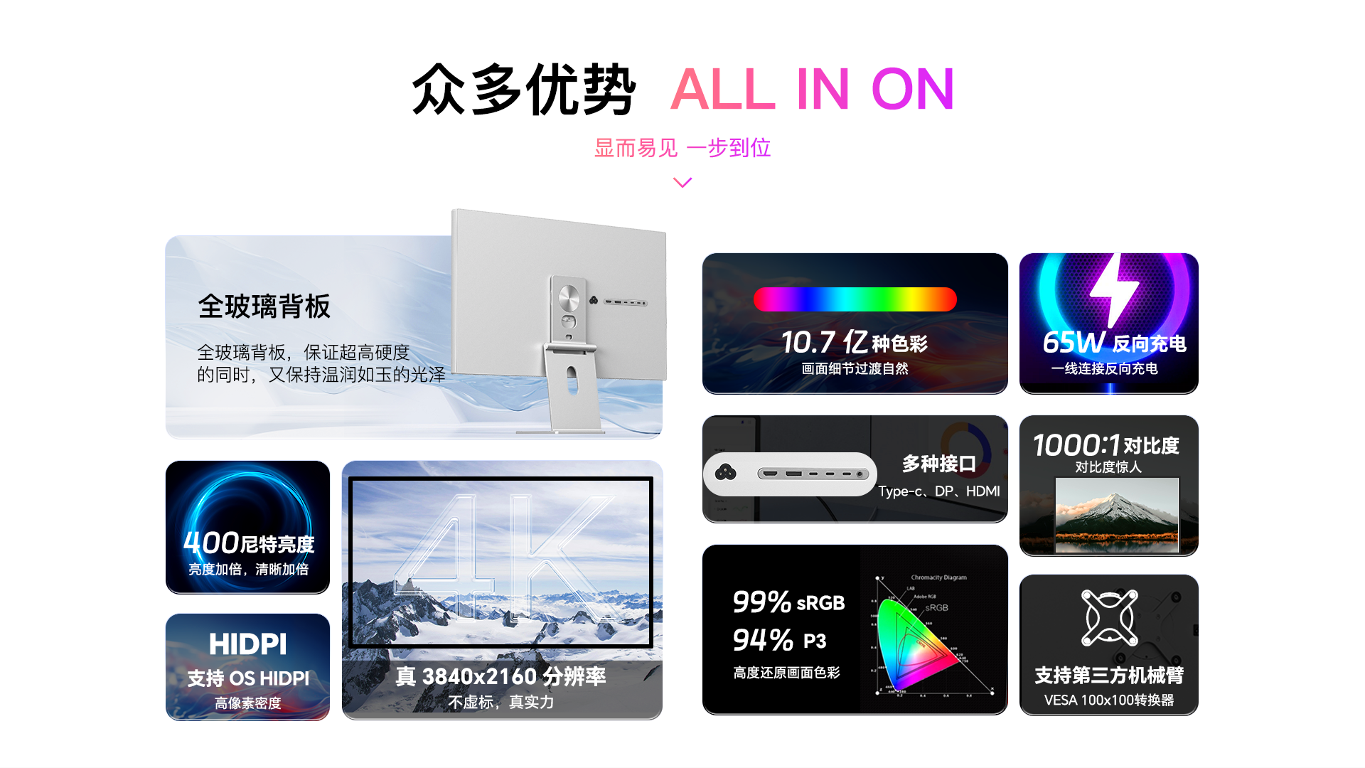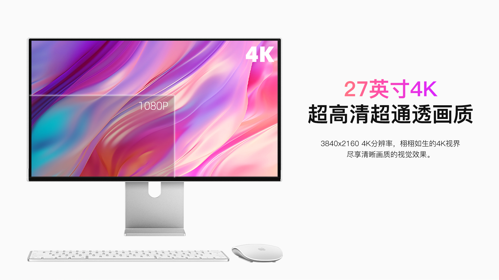 6144 x 3456 (16:9) 分辨率,高达 2100 万像素,223PPI 原生 10 位色深