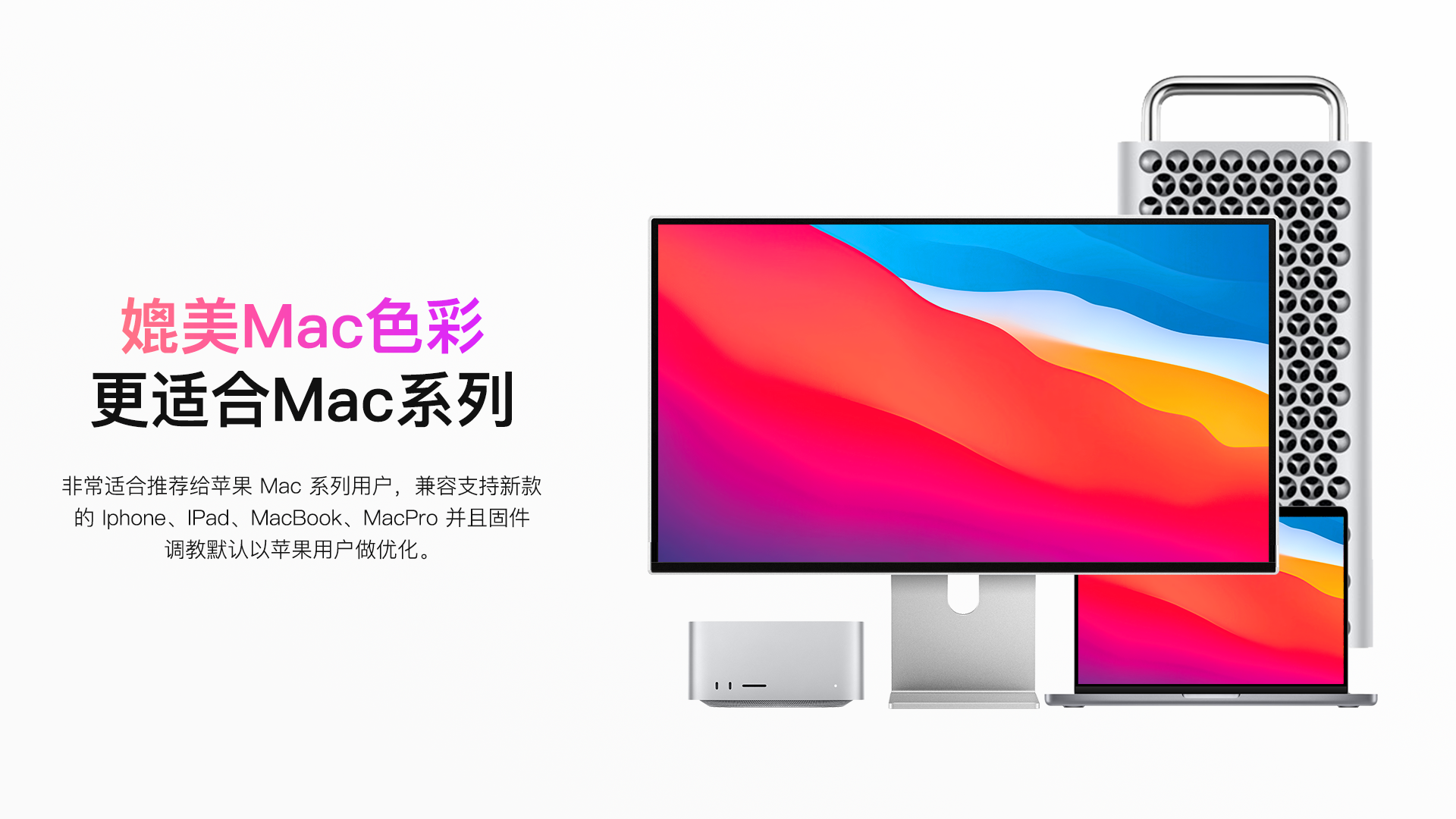 支持兼容 Mac 设备雷雳 5 与 HDMI2.1 接口无压缩 DSC 输入
