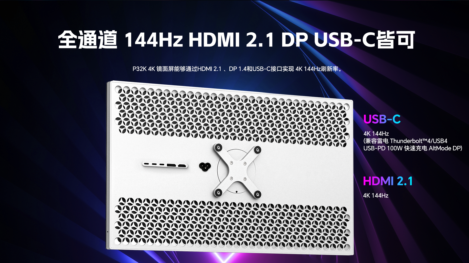 支持兼容 Mac 设备雷雳 5 与 HDMI2.1 接口无压缩 DSC 输入