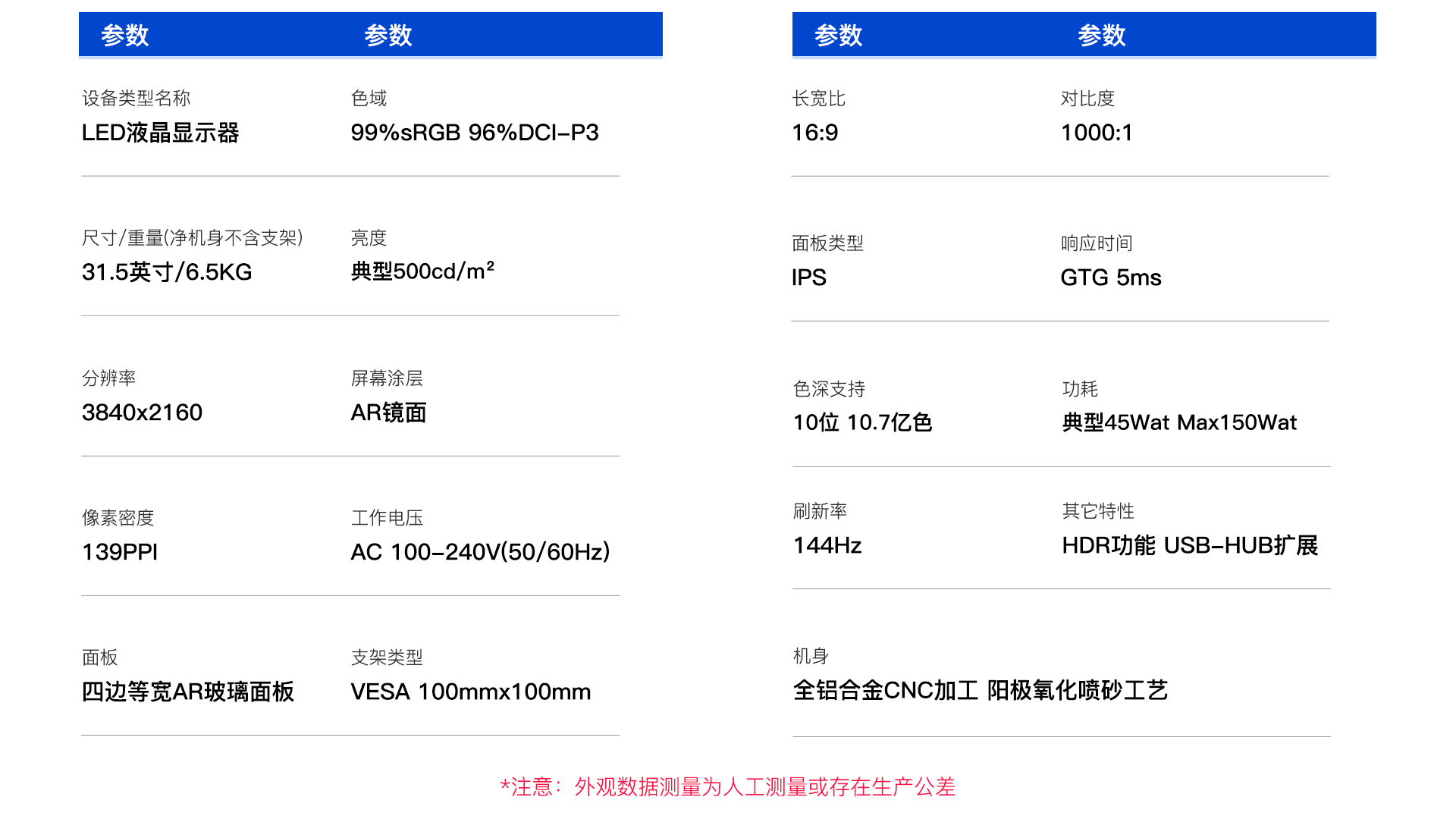 - 支持 HDR 功能 防蓝光功能