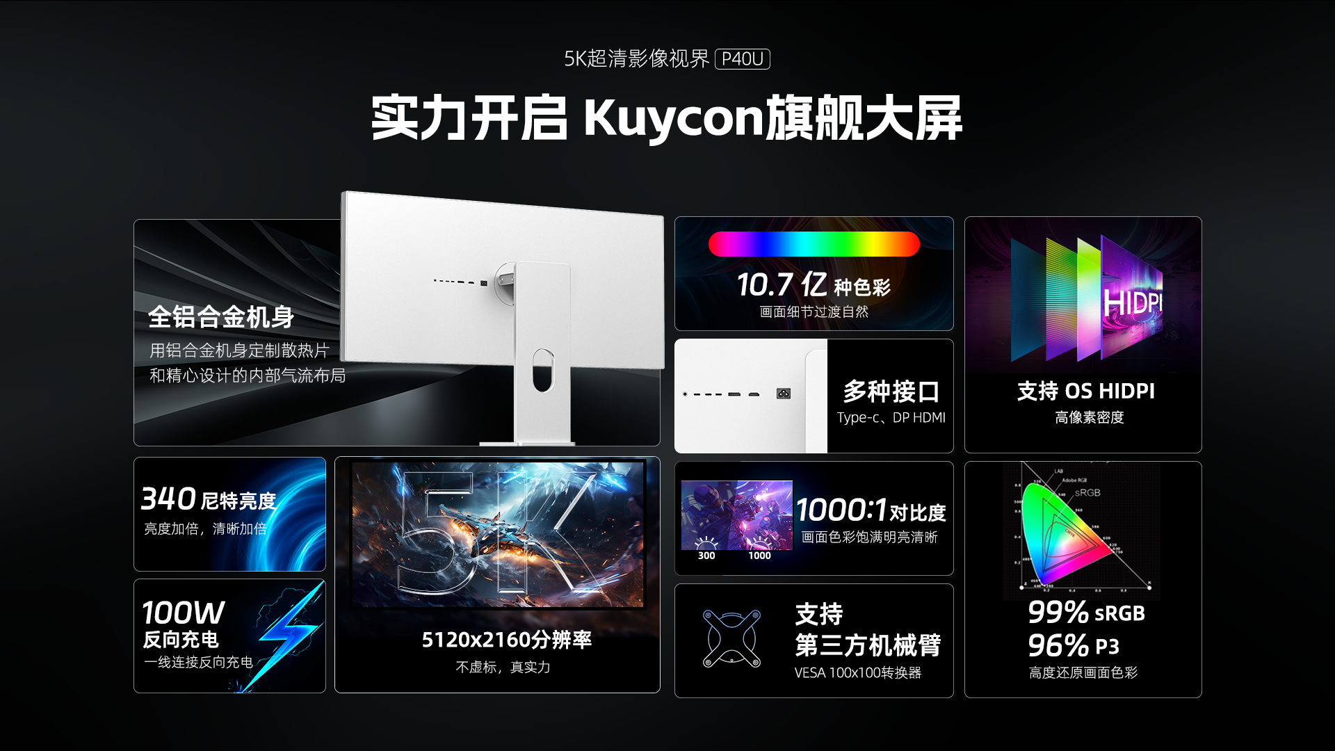 支持兼容 Mac 设备雷雳 5 与 HDMI2.1 接口无压缩 DSC 输入