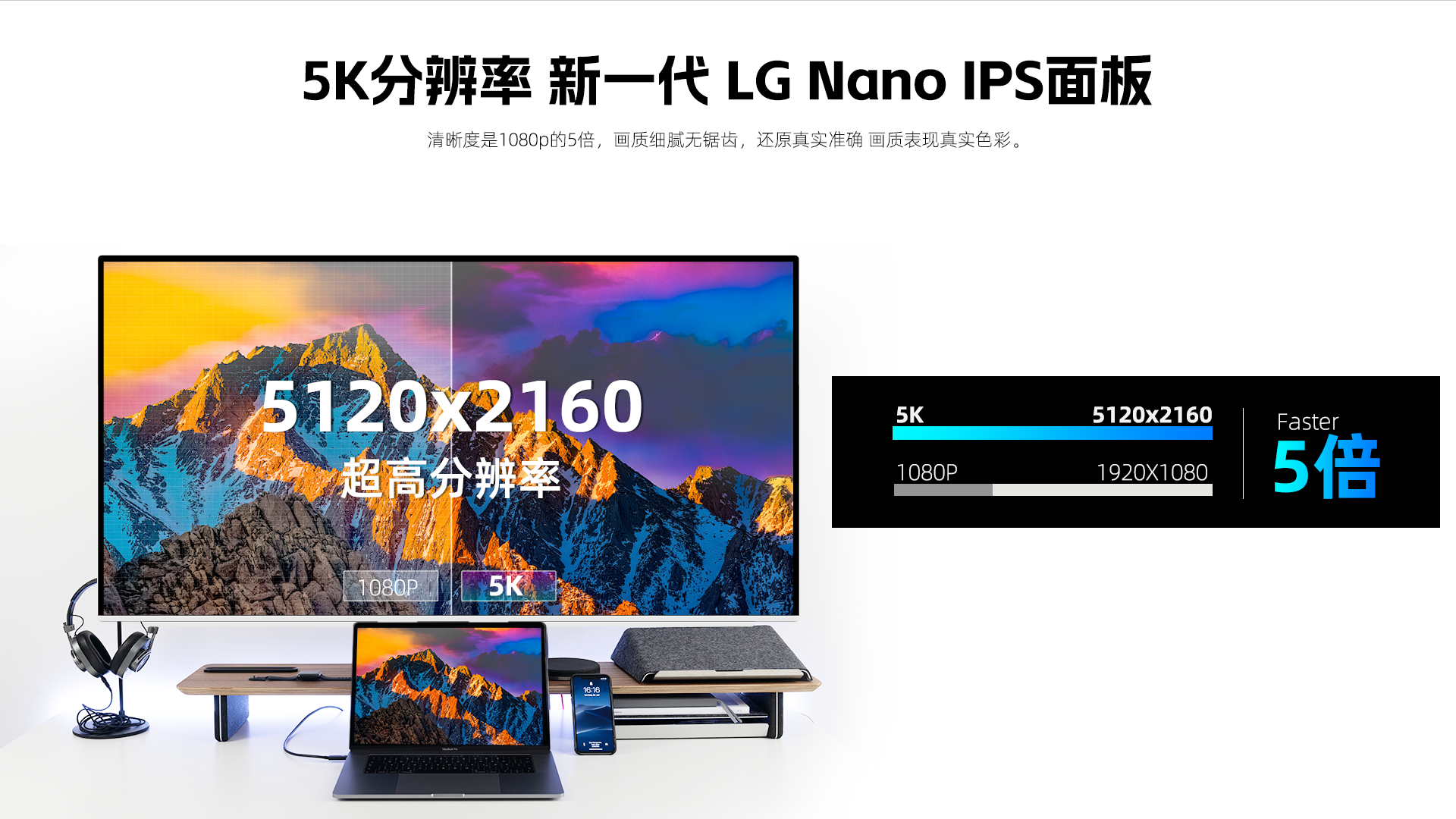 6144 x 3456 (16:9) 分辨率,高达 2100 万像素,223PPI 原生 10 位色深